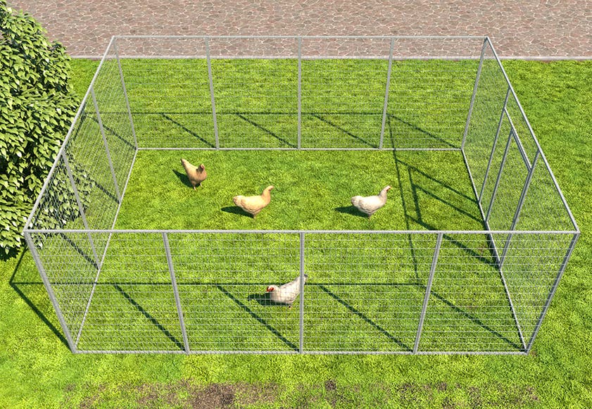 Hönsgårdarna finns i flera storlekar och kan enkelt byggas ut med extra sektioner för att skapa större ytor när flocken växer. Nätet med 100x50 mm maskor och kraftiga 20x20 mm profiler ger god säkerhet och skydd mot rovdjur, samtidigt som det ger hönsen en trygg och rymlig utemiljö.