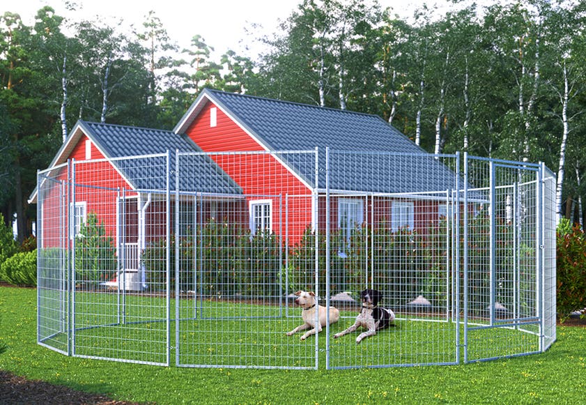 Den runda konstruktionen skapar en mjukare yta som uppmuntrar naturlig rörelse, och panelerna är utformade för att göra monteringen snabb och smidig. Flexy fungerar lika bra som permanent rastgård som tillfällig inhägnad när du vill erbjuda hunden en trygg, öppen och trivsam plats att vara på.
