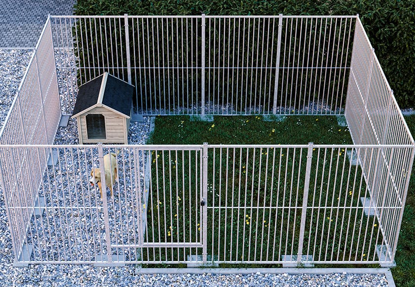 Grizzly hundgård är en kraftig och säker hundgård, särskilt framtagen för att ge din hund en trygg och stabil uteplats. Konstruktionen med kraftiga runda stående profiler förhindrar klättring och bidrar till ökad säkerhet. Hundgården levereras komplett med skruvar, muttrar och brickor, vilket gör monteringen enkel och smidig. Den är varmförzinkad enligt Demex höga standarder för lång hållbarhet och kan kompletteras med hörnstag för extra stabilitet eller takhållare för att montera tak.