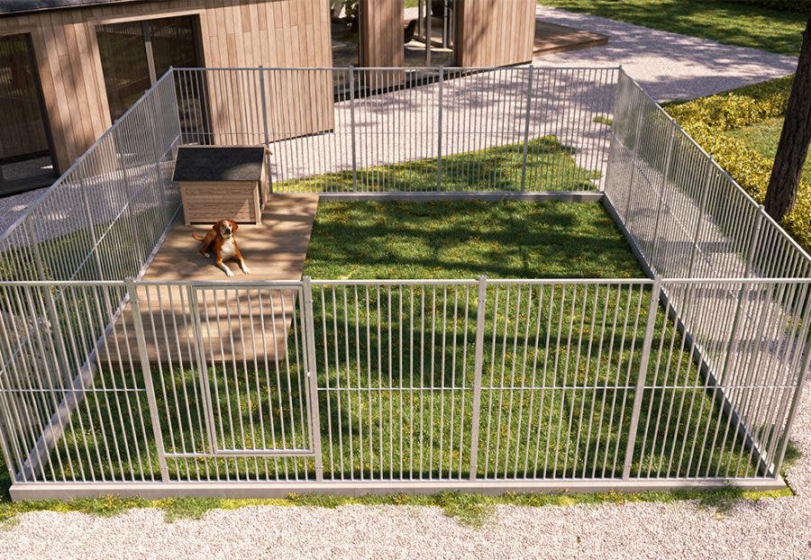 Grizzly är inte bara robust, utan också en hundgård som ser bra ut och fungerar lika bra sommar som vinter. En trygg, stabil och säker plats där din hund kan vistas utan stress – och utan risk.