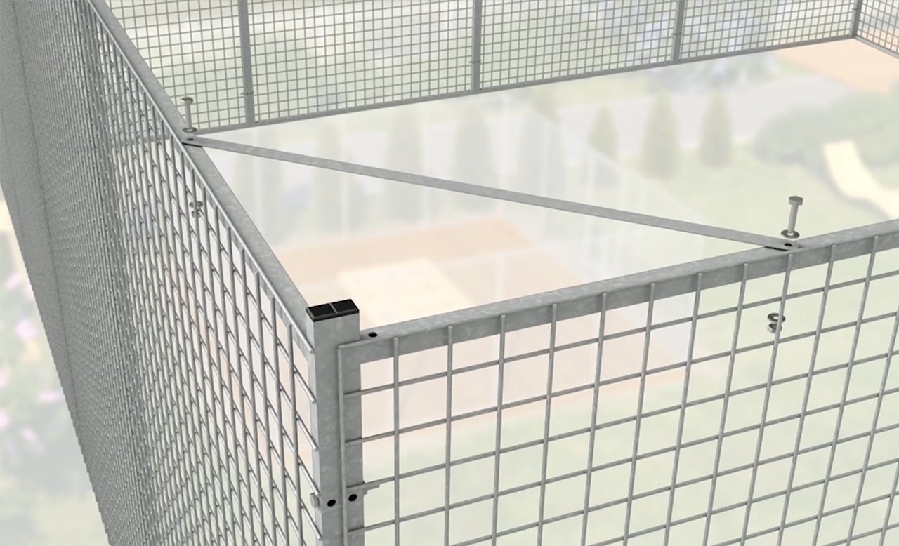 Takhållaren används för att skapa en stabil konstruktion för tak, nät eller skydd och är perfekt både för hundgårdar och hönsgårdar. Den hjälper effektivt till att hålla fåglar och andra djur borta och ökar samtidigt säkerheten i hela gården.