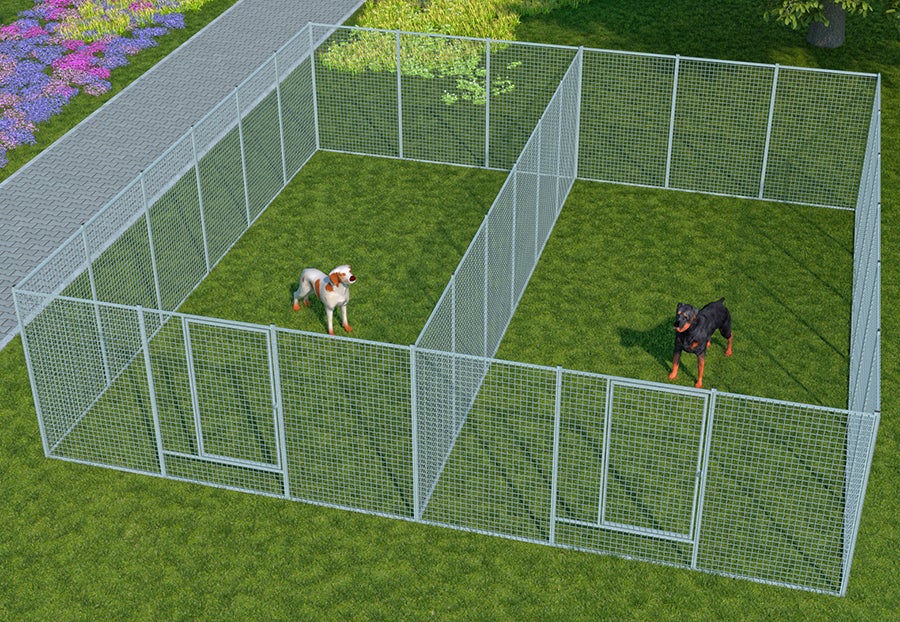 Demex Home semi- och triogårdar är utvecklade för hundägare som behöver praktiska lösningar när flera hundar ska vistas ute samtidigt. Gårdarna är uppdelade i separata sektioner som ger varje hund sitt eget utrymme för ökad trygghet och tydlig struktur i vardagen — något som rekommenderas inom modern hundhållning för att minska stress och konflikter. För enklare hantering finns även en lyxvariant utrustad med en dörr mellan sektionerna, vilket gör det möjligt att röra sig mellan hundarna utan att lämna hundgården.
