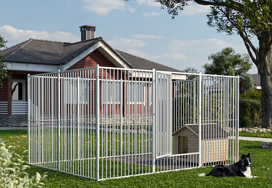 Grizzly hundgård är en kraftig och säker hundgård, särskilt framtagen för att ge din hund en trygg och stabil uteplats. Konstruktionen med kraftiga runda stående profiler förhindrar klättring och bidrar till ökad säkerhet. Hundgården levereras komplett med skruvar, muttrar och brickor, vilket gör monteringen enkel och smidig. Den är varmförzinkad enligt Demex höga standarder för lång hållbarhet och kan kompletteras med hörnstag för extra stabilitet eller takhållare för att montera tak.