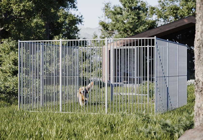 Grizzly hundgård är en kraftig och säker hundgård, särskilt framtagen för att ge din hund en trygg och stabil uteplats. Konstruktionen med kraftiga runda stående profiler förhindrar klättring och bidrar till ökad säkerhet. Hundgården levereras komplett med skruvar, muttrar och brickor, vilket gör monteringen enkel och smidig. Den är varmförzinkad enligt Demex höga standarder för lång hållbarhet och kan kompletteras med hörnstag för extra stabilitet eller takhållare för att montera tak.