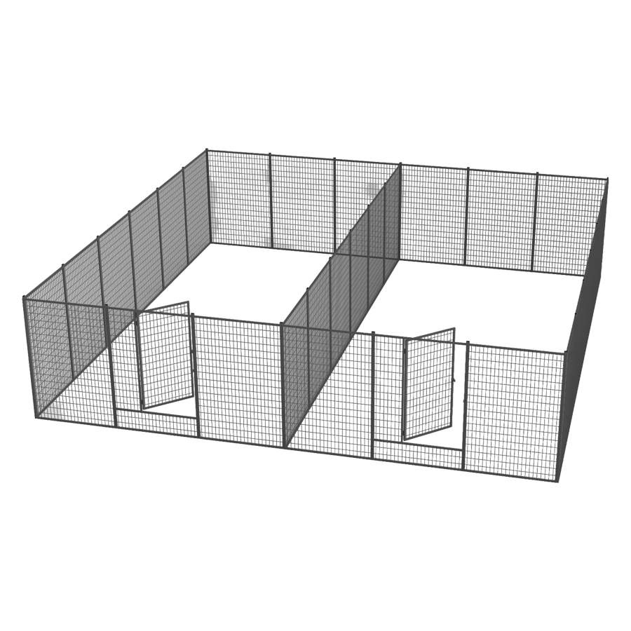 Demex semi- och triogårdar är utvecklade för hundägare som behöver praktiska lösningar när flera hundar ska vistas ute samtidigt. Gårdarna är uppdelade i separata sektioner som ger varje hund sitt eget utrymme för ökad trygghet och tydlig struktur i vardagen — något som rekommenderas inom modern hundhållning för att minska stress och konflikter. För enklare hantering finns även en lyxvariant utrustad med en dörr mellan sektionerna, vilket gör det möjligt att röra sig mellan hundarna utan att lämna hundgården.