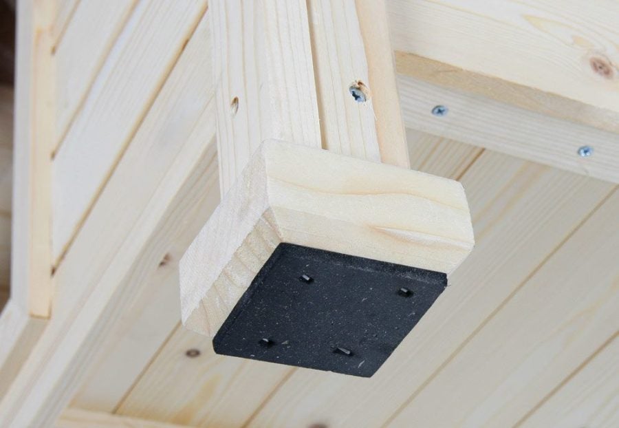 Träet är behandlat med en vattenbaserad bets. Trä som inte upprätthålls torkar ut och kan bryta eller varpa. Det är viktigt att du underhåller och behandlar din hundkoja regelbundet. Använd en behandling som är anpassad för trämöbler utomhus. Se till att endast använda behandlingar eller betsar som är giftfria för djur.