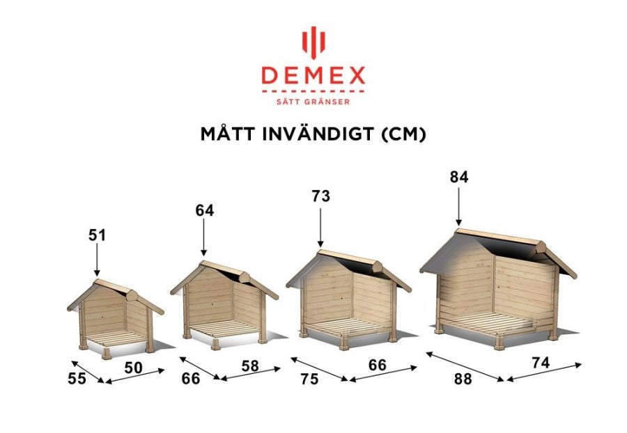 Xlarge: Utvändigt: 1050 x 1160 x 1060 mm Invändigt: 740 x 880 x 840 mm Dörr: 380 x 540 mm